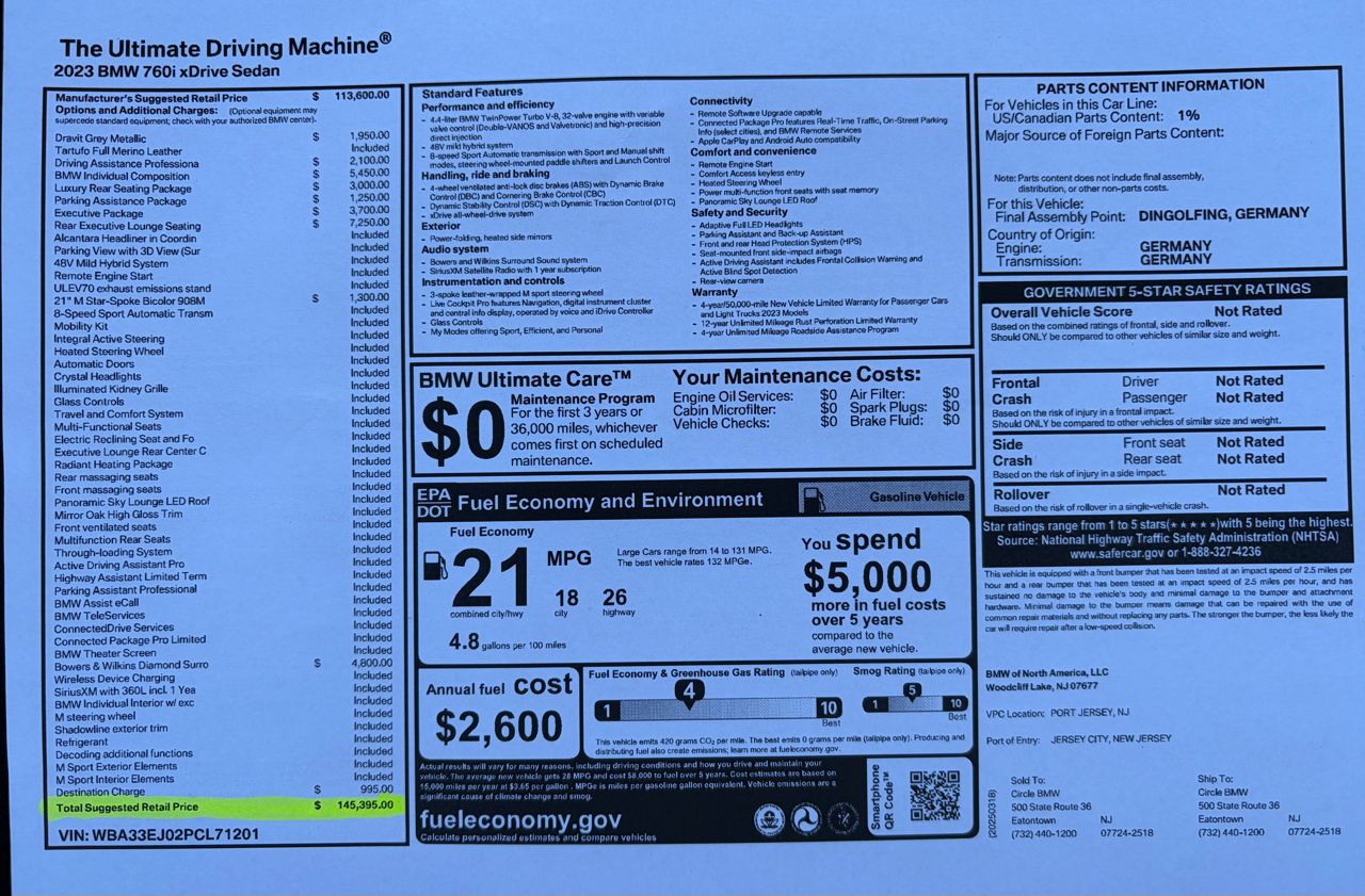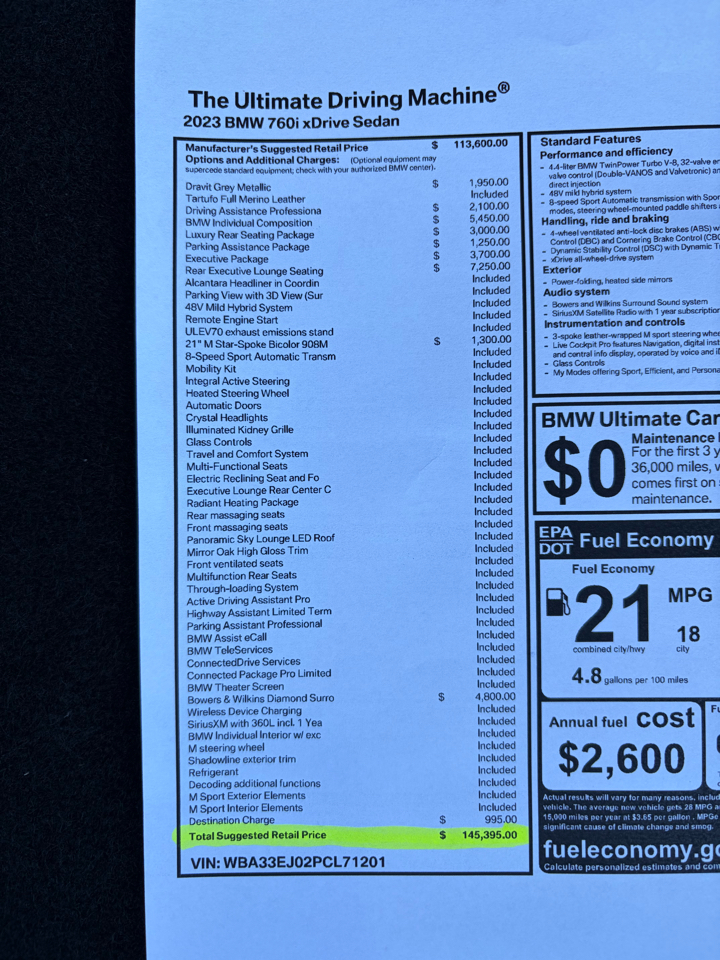 2023 BMW 7 Series 760i xDrive Sedan